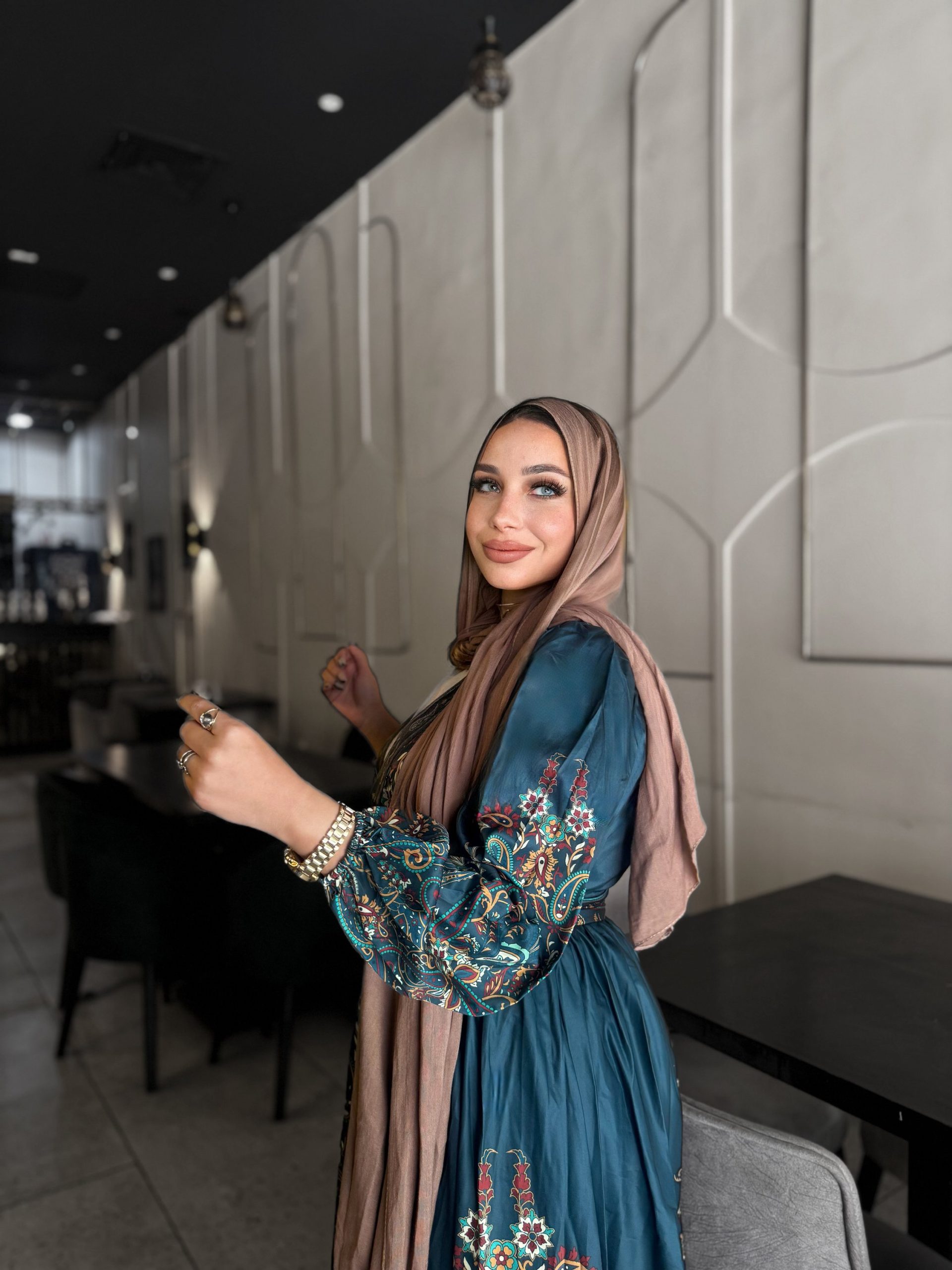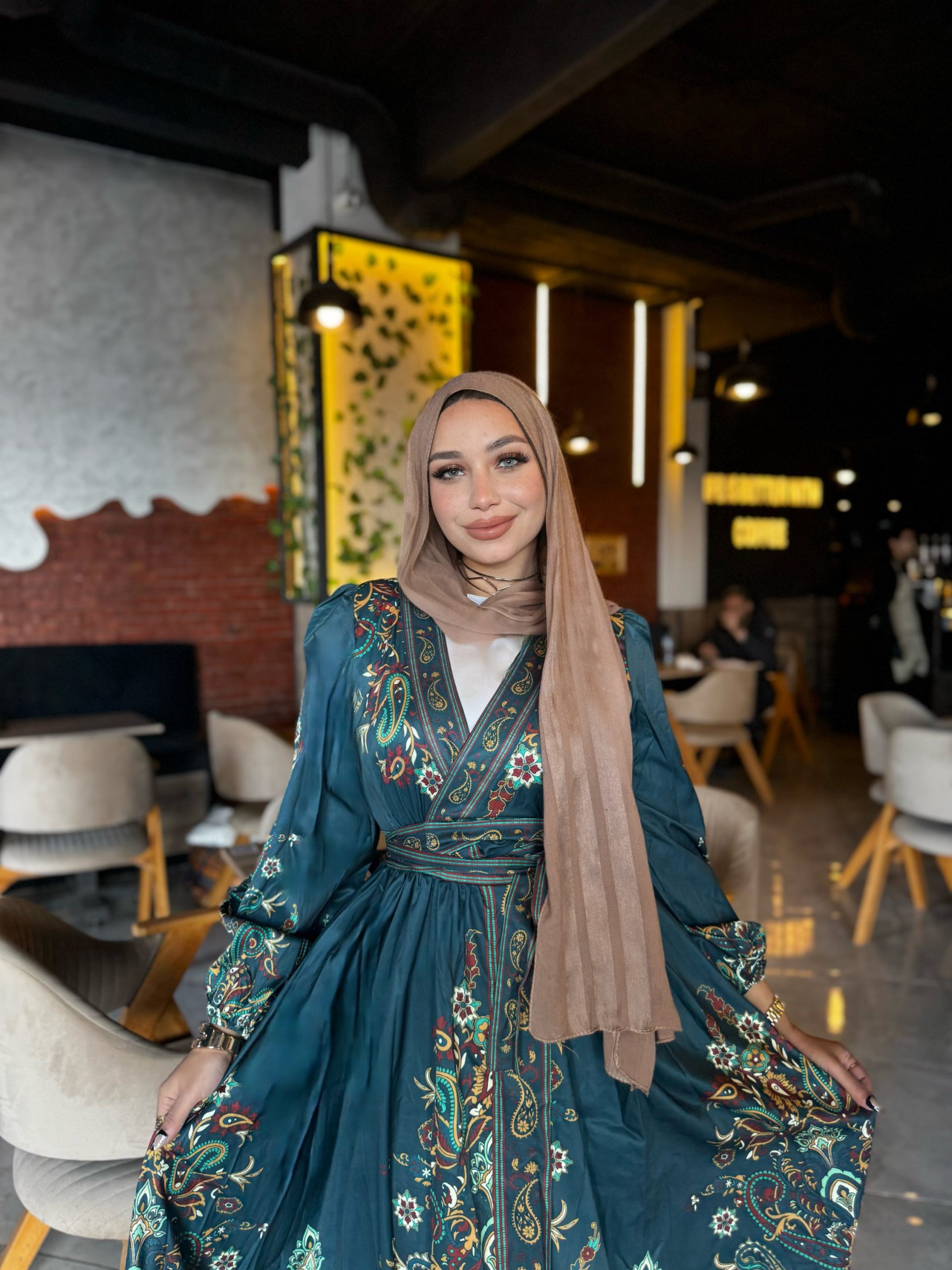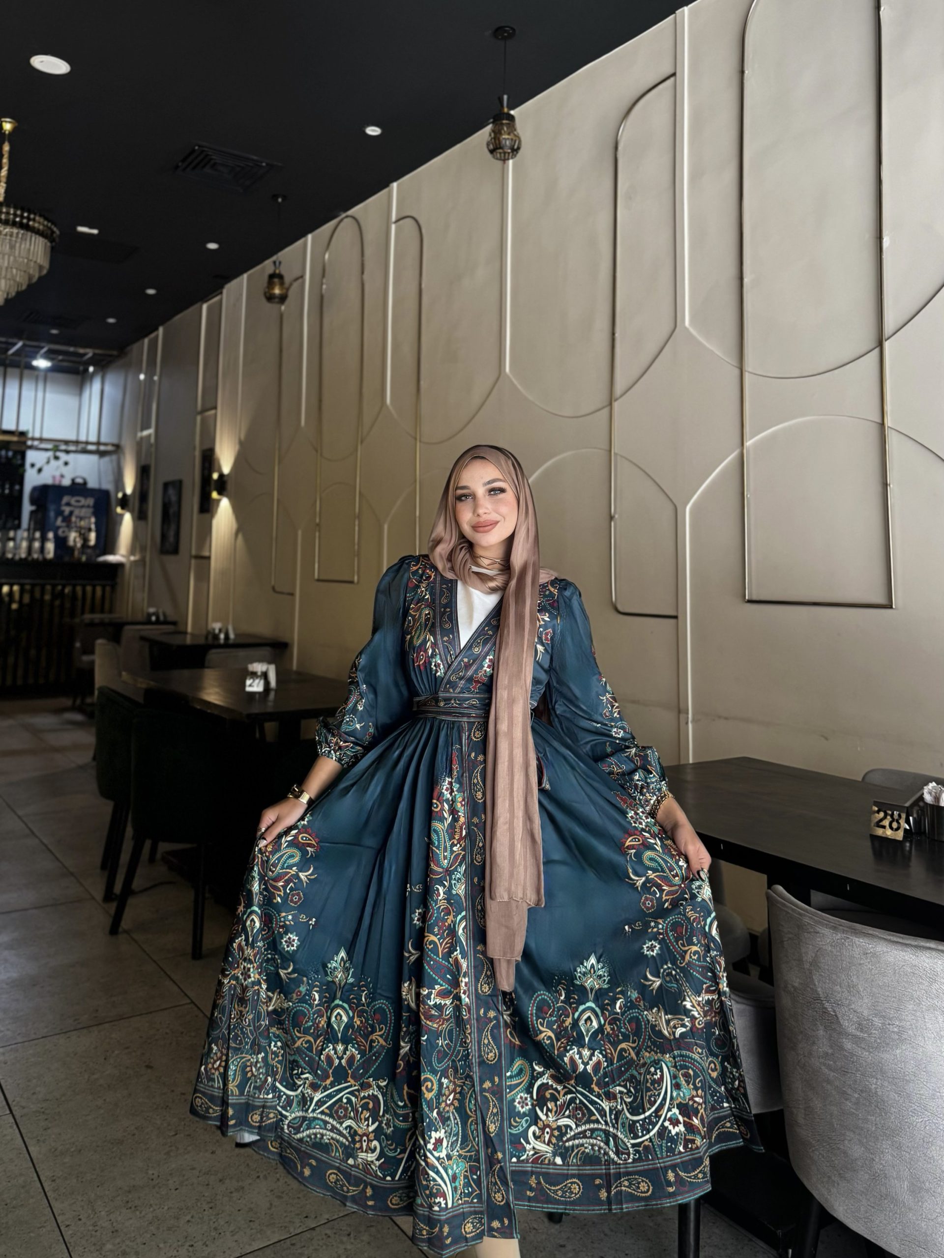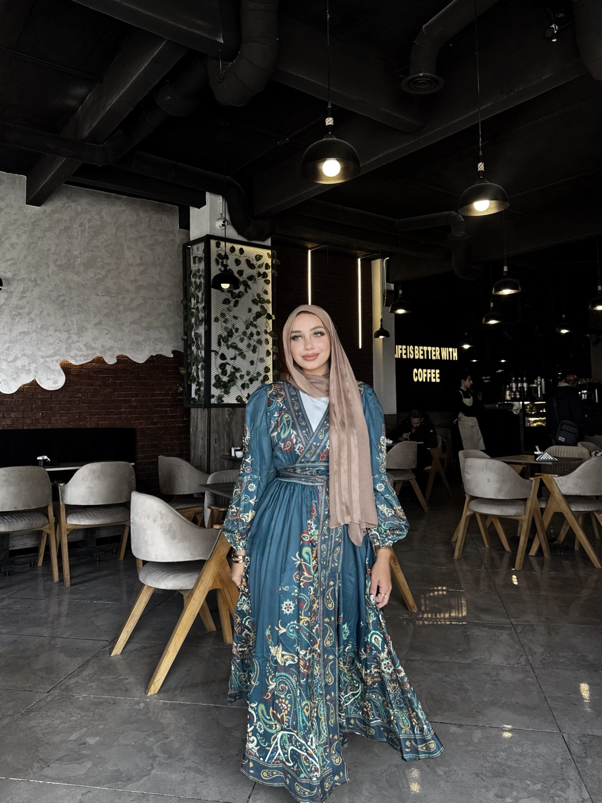 فستان ستان ناعم ممزوج بالقطن الطبيعي مشجر