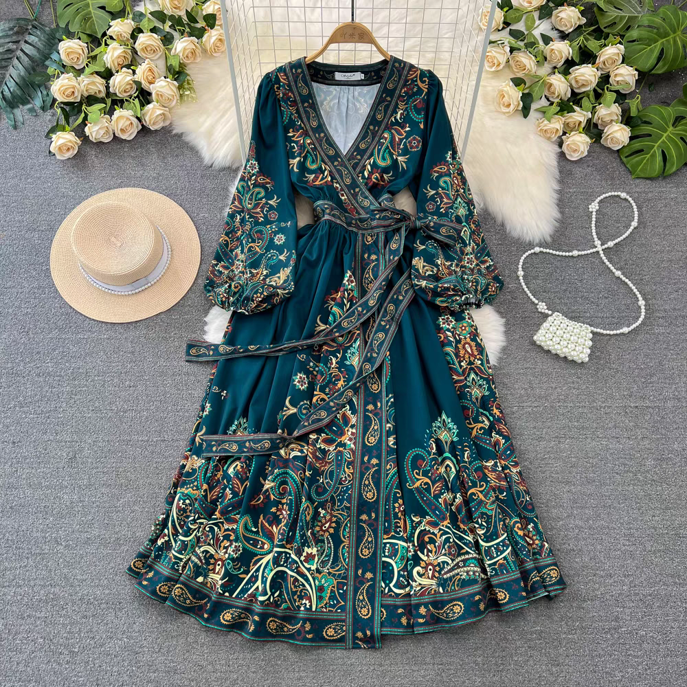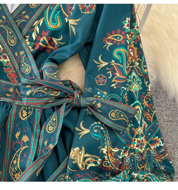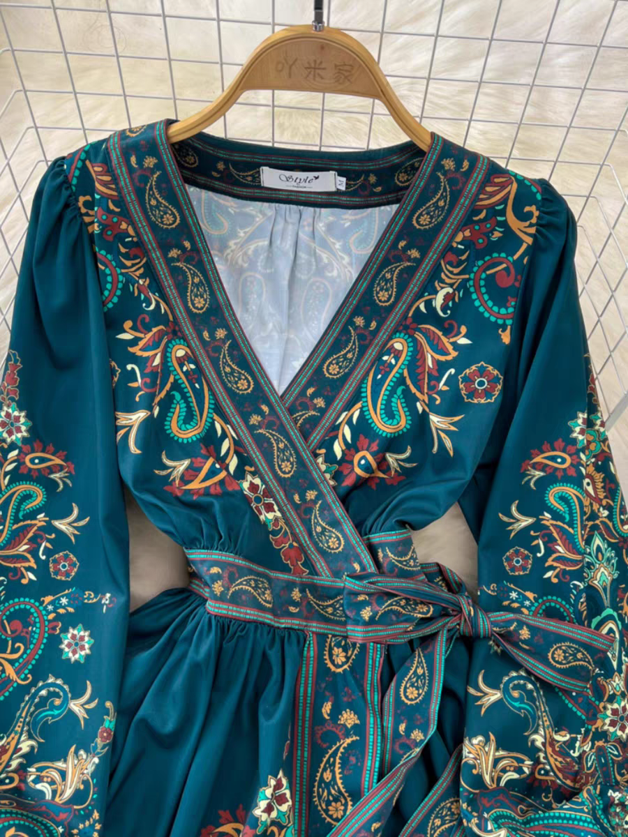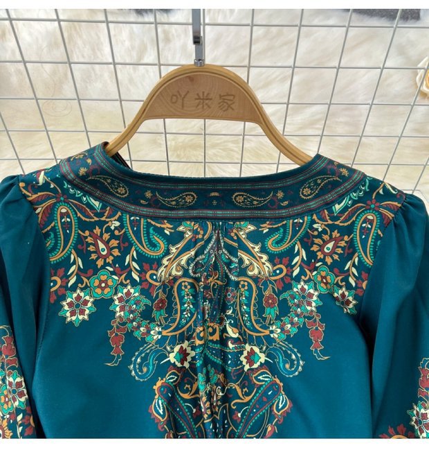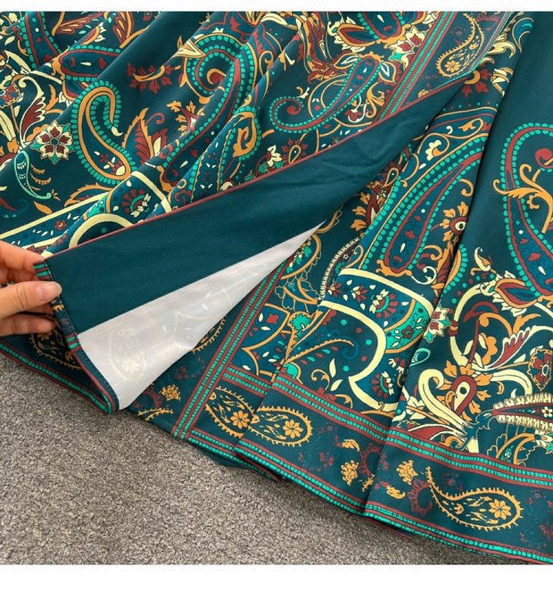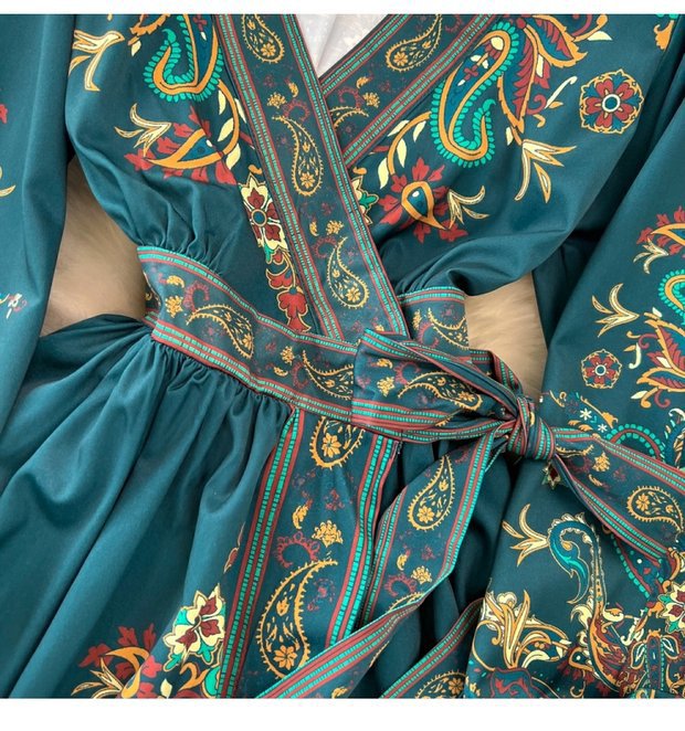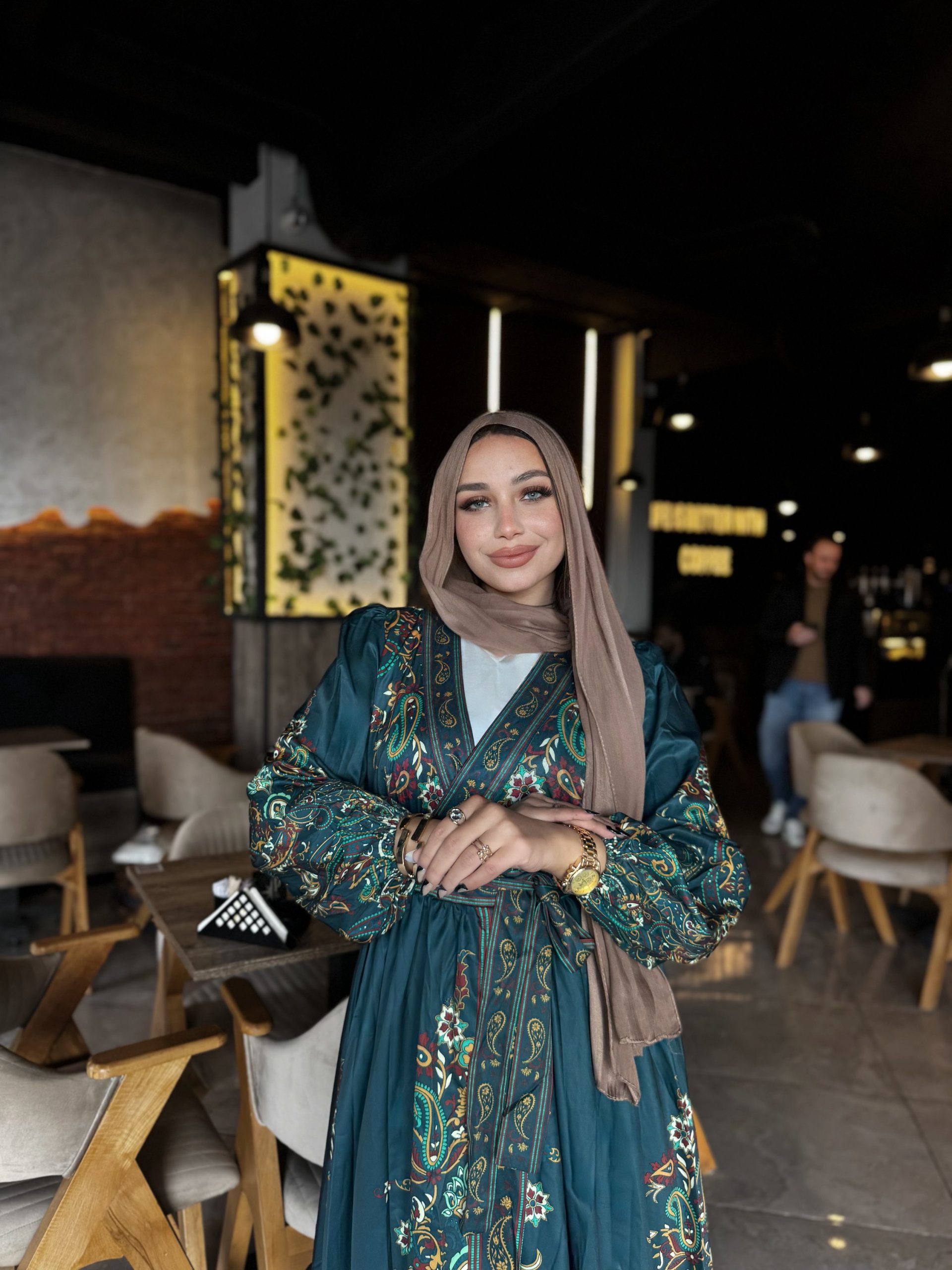 فستان ستان ناعم ممزوج بالقطن الطبيعي مشجر