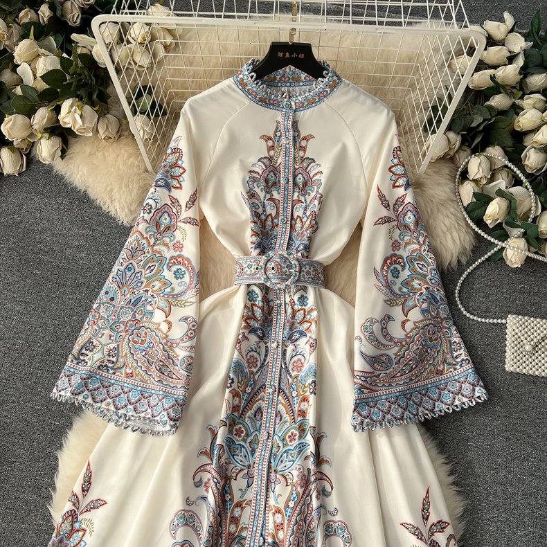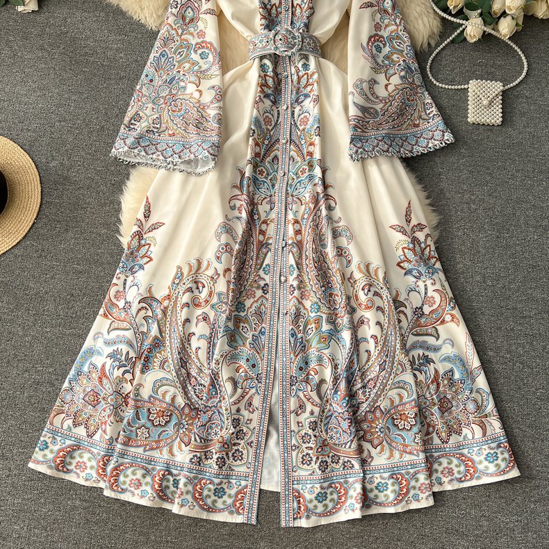 فستان مستورد ستان ناعم ممزوج بالقطن الطبيعي مشجر.