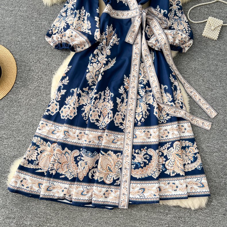 فستان ستان ناعم ممزوج بالقطن الطبيعي مشجر