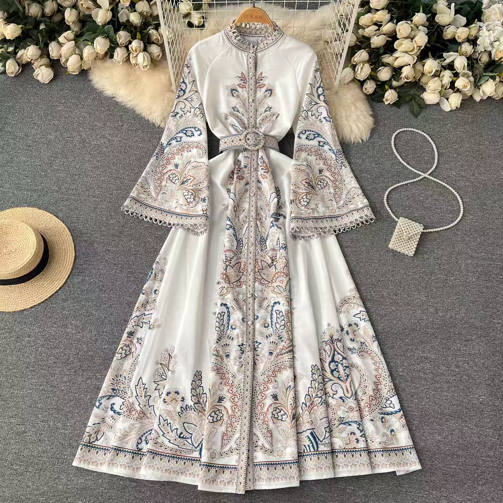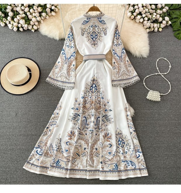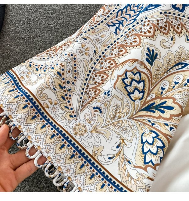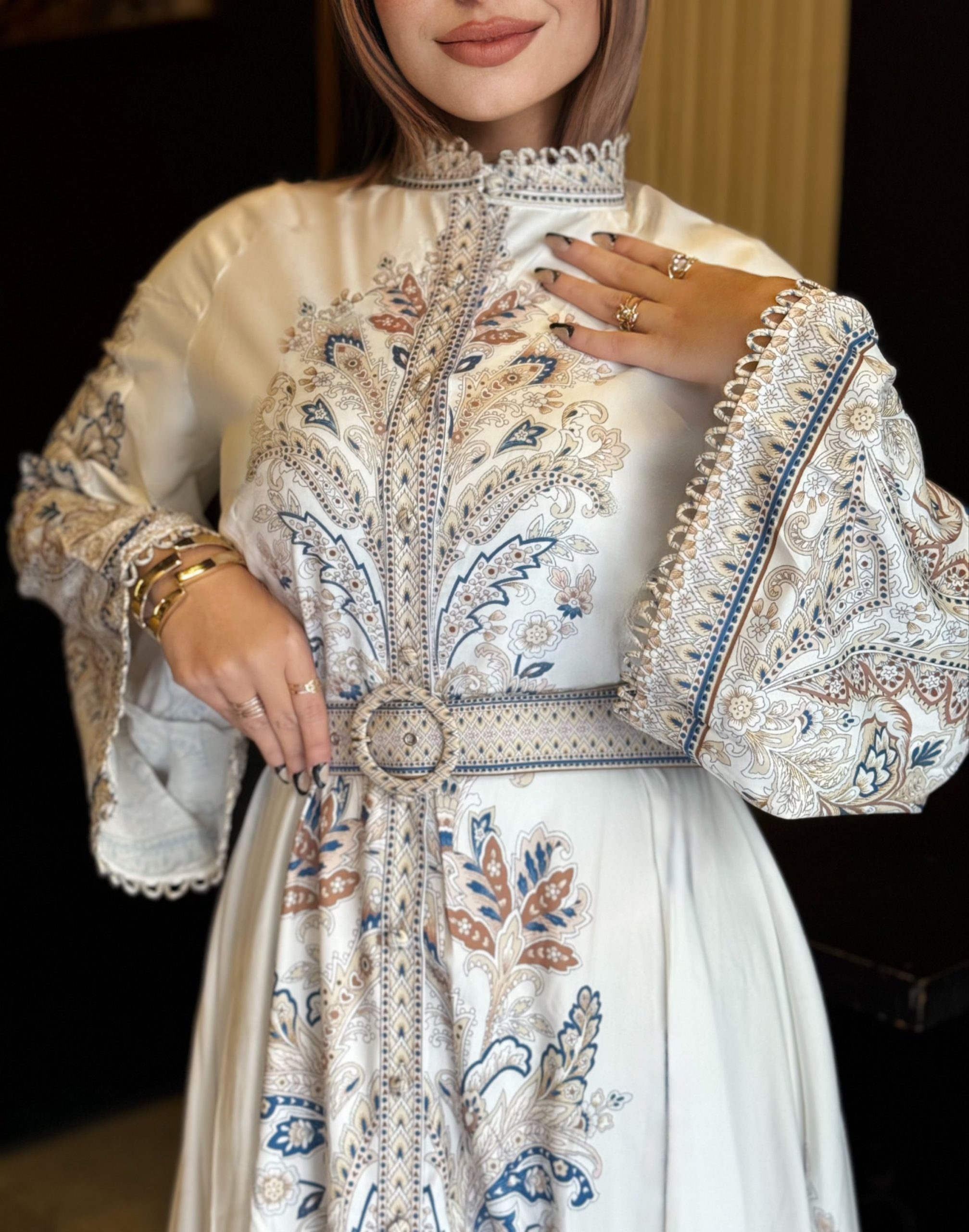 فستان مستورد ستان ناعم ممزوج بالقطن الطبيعي مشجر.